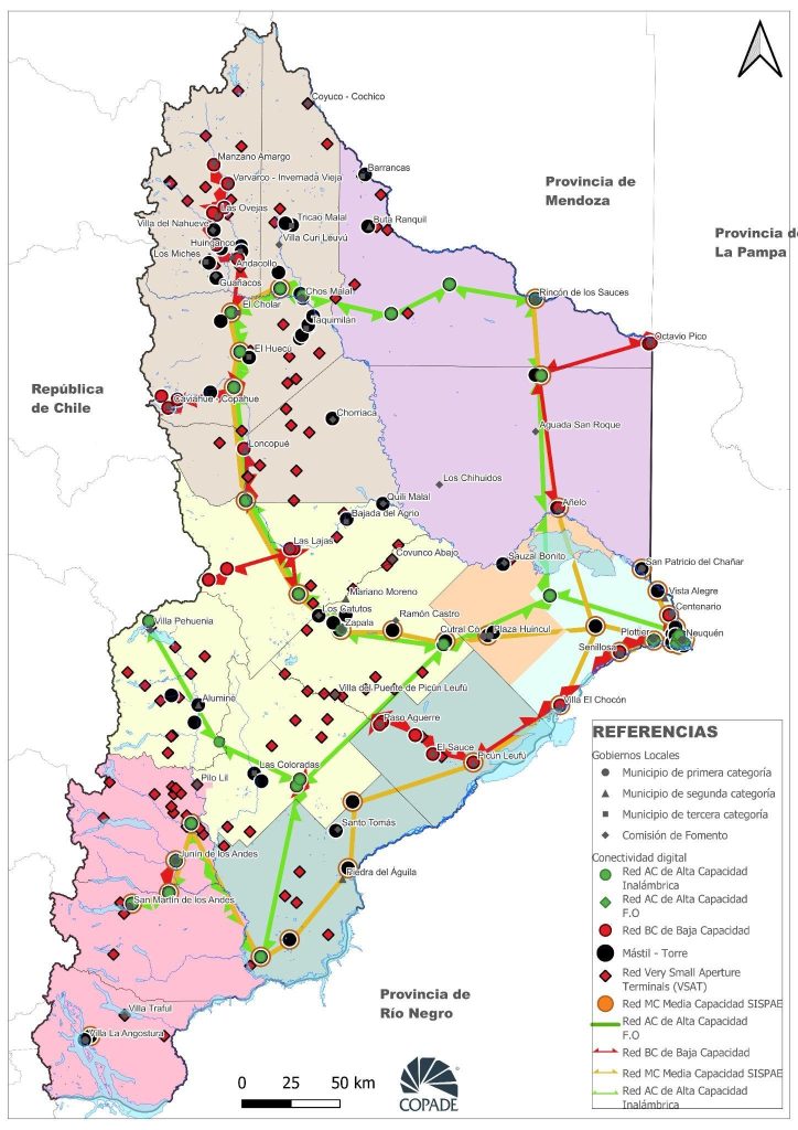 El siguiente mapa muestra las redes de conectividad digital de la provincia del Neuquén: